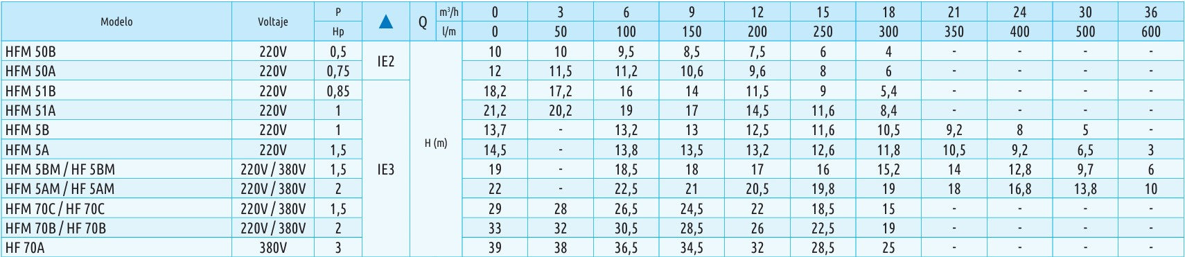 - Altura manométrica hasta 39 mts.